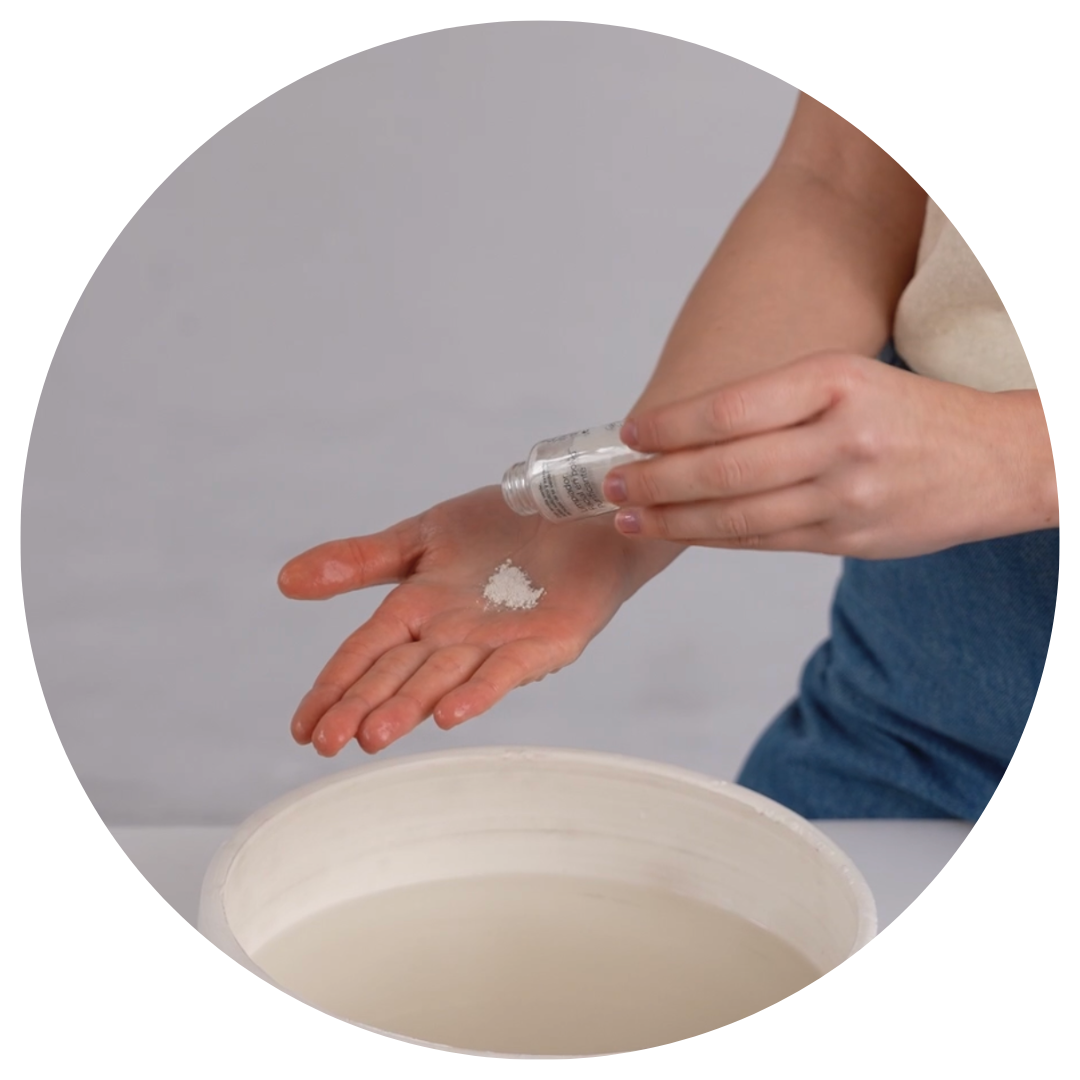 Deposita una porción de polvo sobre las manos húmedas.