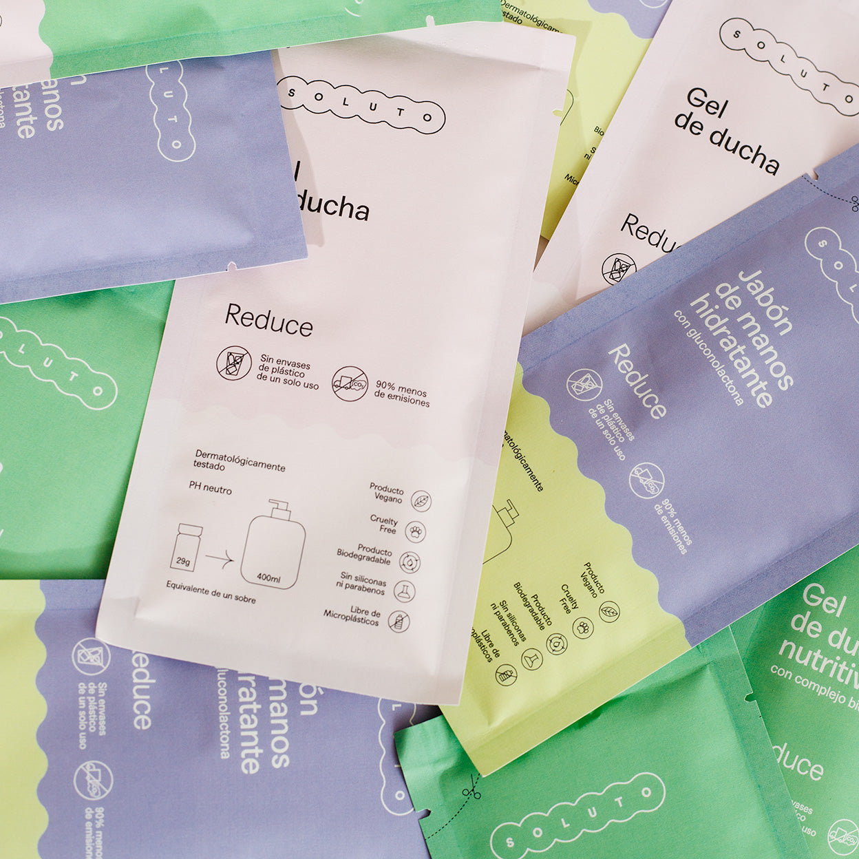 Eliminamos plásticos de un solo uso con recargas de papel reciclable, reduciendo residuos y CO2.